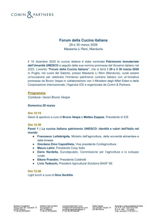Il convegno ha ricordato che l’Italia è il primo Paese in Europa per numero di prodotti a denominazione di origine e tra i primi al mondo per biodiversità agroalimentare. Il riconoscimento UNESCO si inserisce in un percorso iniziato nel 2010 con la proclamazione della dieta mediterranea quale patrimonio immateriale e proseguito con l’arte del pizzaiolo napoletano e altre tradizioni.